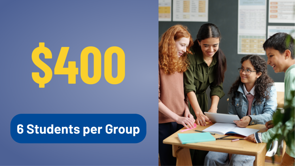 - Groups are capped at six students to ensure participation and individual attention.